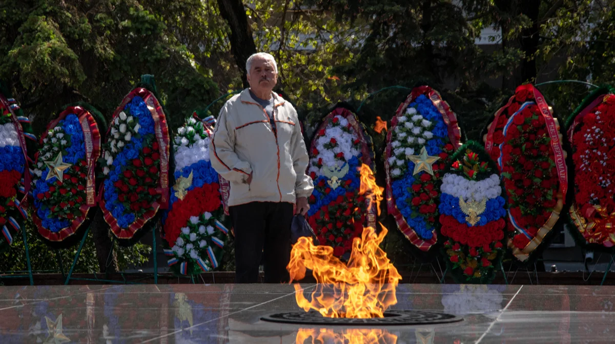 Первое, что бросается в глаза на улицах Белгорода, — черно-белые портреты ветеранов войны на окнах маршруток и автобусов, парикмахерских, ресторанов, магазинов, прокуратуры, мэрии, городской думы. Задолго до 9 мая в этом году местная администрация призналась, что «оперативная обстановка» по-прежнему не позволяет провести в центре города шествие «Бессмертного полка». Взамен чиновники придумали патриотическую акцию «Окна Победы».