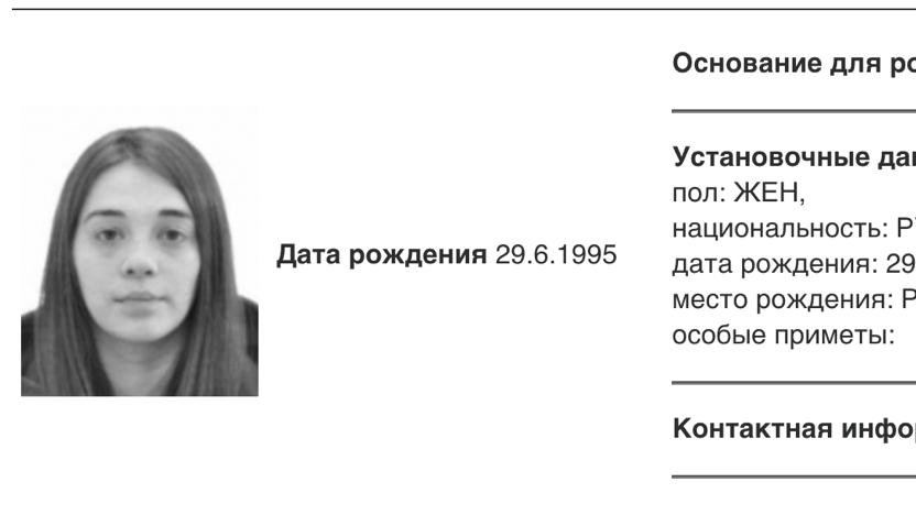 В базе розыска МВД появилась карточка Кристины Даниловой — девушки российского военного Сергея Грицая (позывной Эрнест), который погиб на войне в Украине после критики командования. На это обратила внимание «Медиазона».