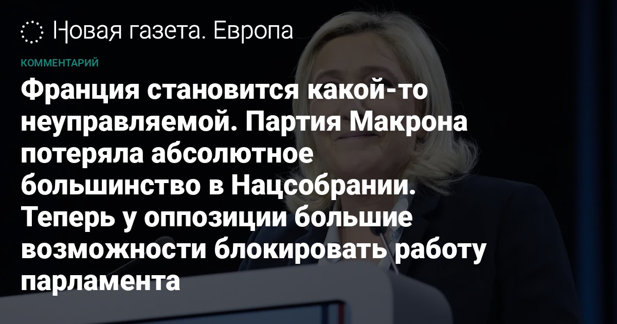 Парламентские выборы во Франции (прошли в два тура, 12 и 19 июня) завершились провалом для президентской коалиции. Макроновская партия провела в нижнюю палату вполовину меньше людей, чем пять лет назад, сразу несколько министров проиграли в своих округах (что означает для них отставку, и, автоматом, переназначение правительства), а самое главное — президентские силы потеряли абсолютное большинство, а значит теперь для проведения многих законов им придется договариваться с пока не готовой к уступкам оппозицией. Если диалога не получится, нам ничего не останется, кроме как распустить парламент, угрожают в макроновской партии. И очень рискуют в таком случае.