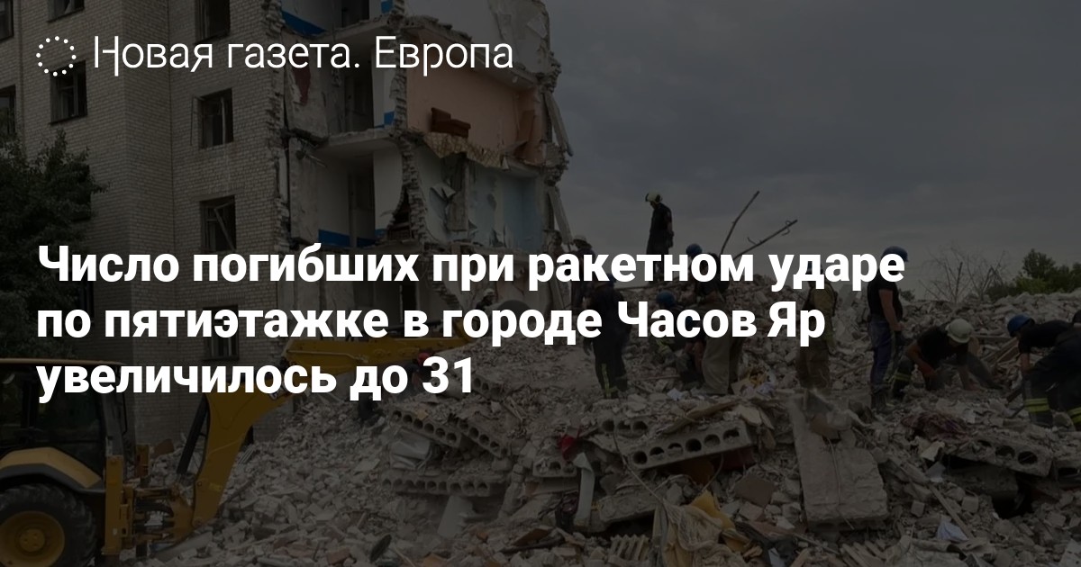 Число погибших при попадании ракеты в жилой дом в городе Часов Яр Донецкой области увеличилось до 17 человек, сообщает ГСЧС Украины.