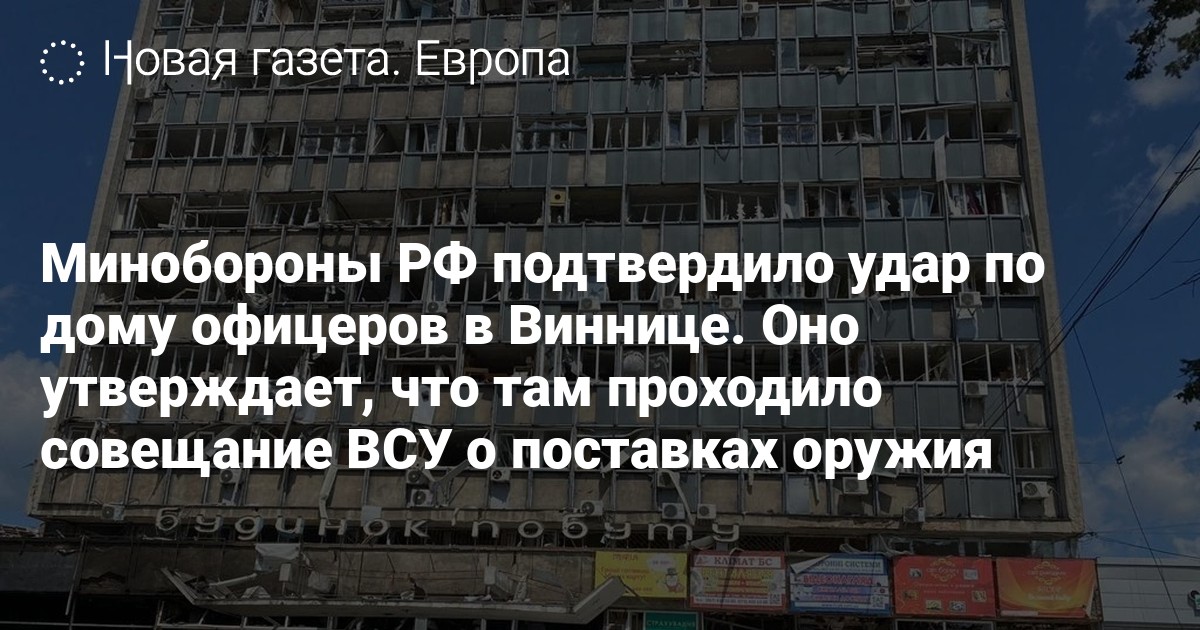 Минобороны РФ подтвердило удар по дому офицеров в Виннице. Оно утверждает, что там проходило совещание ВСУ о поставках оружия