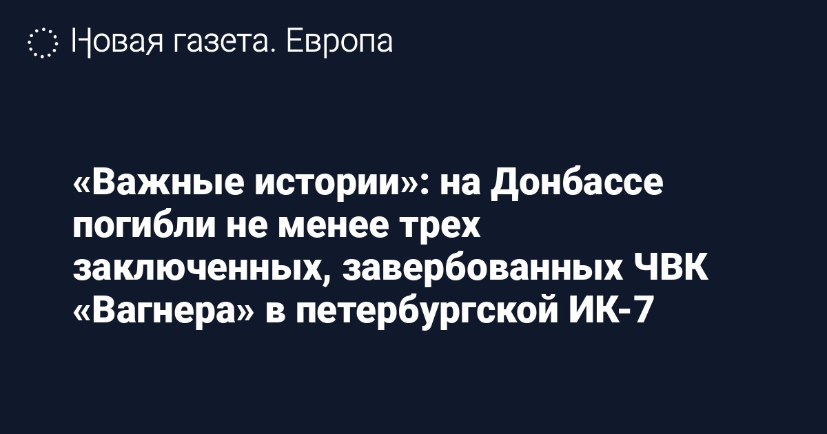 Ранее «Важные истории» писали, что заключенных из ИК-7 «Яблоневка» и ИК-6 «Обухово» в Петербурге увезли в Ростовскую область. Заключенным этих же колоний, по данным «Важных историй», представители ЧВК «Вагнер» предлагали «добровольно» поехать на Донбасс. По данным Общественной наблюдательной комиссии Петербурга, в местном управлении ФСИН эту информацию назвали слухами.