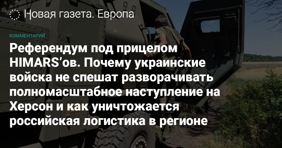 Месяц назад, 10 июля, в интервью лондонской Times министр обороны Украины Алексей Резников сказал, что Владимир Зеленский поручил военному командованию разработать план освобождения южных районов Украины. Депутаты Госдумы поспешили объявить это указание украинского президента свидетельством «агонии» Украины. Но вскоре перспектива наступления Вооруженных сил Украины на юге и освобождения Херсона стала вызвать в Москве беспокойство, переходящее в панику. По какой логике развиваются бои за Херсон — по просьбе «Новой газеты. Европа» объясняет военный эксперт и член Совета ПИР-Центра Юрий Федоров.