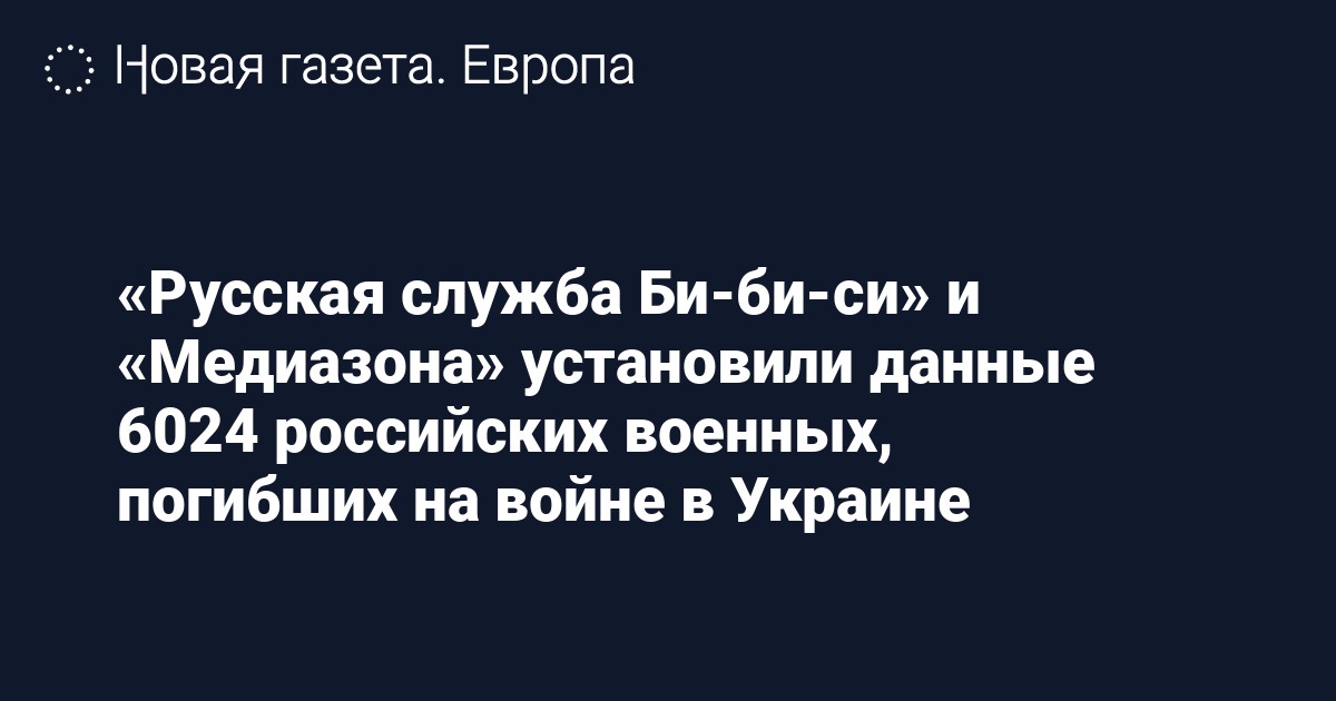 «Русская служба Би-би-си» и «Медиазона» совместно с волонтерами по открытым источникам установили данные 6024 российских военных, погибших на войне в Украине. Об этом сообщает «Би-би-си».