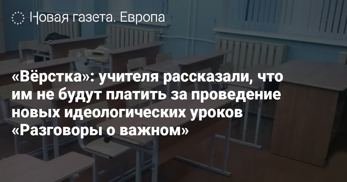 Учителя из нескольких регионов и представители профсоюзов рассказали, что дополнительных средств на оплату новых идеологических уроков «Разговоры о важном» выделено не было, пишет «Вёрстка».