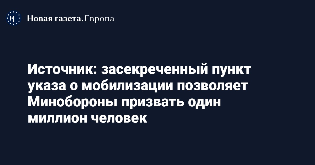 Засекреченный седьмой пункт указа о мобилизации позволяет Минобороны призвать один миллион человек. Об этом «Новой газете. Европа» сообщил источник в администрации президента.
