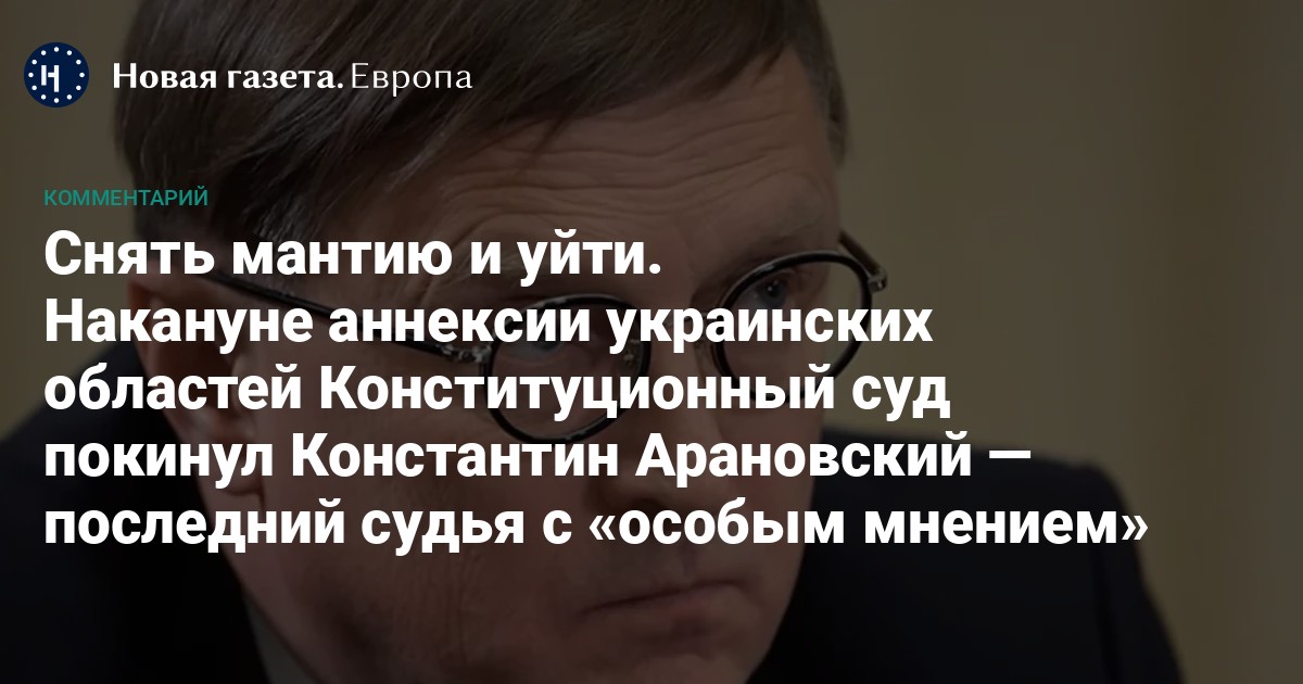 В преддверии ожидаемой проверки на конституционность договора о принятии в Российскую Федерацию новых территорий судья Константин Арановский ушёл в отставку: «Конституционный Суд РФ рассмотрел личное заявление судьи КС РФ Константина Арановского об отставке до достижения им предельного возраста пребывания в должности и удовлетворил его». Кто-то немедленно закричал, что, мол, «захотел соскочить». Но юридическое сообщество отнеслось к поступку коллеги с большим уважением. И вот почему.