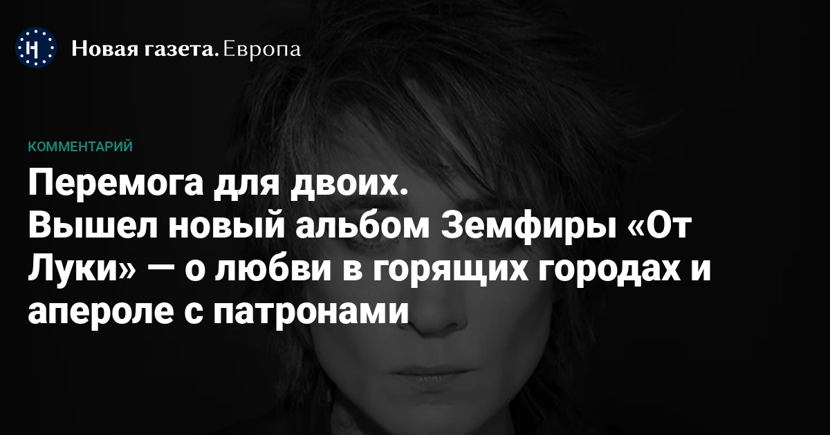 Земфире потребовалось семь месяцев, чтобы вернуться к себе. В ее новом альбоме «От Луки» примет военного времени хоть отбавляй: красная кнопка, обойма патронов, перемога, поезда из Киева в Польшу… Она отдает себе отчет в том, что произошла катастрофа. Нет там только одного — страха. Вы не найдете его ни в одной из четырех песен «Луки».