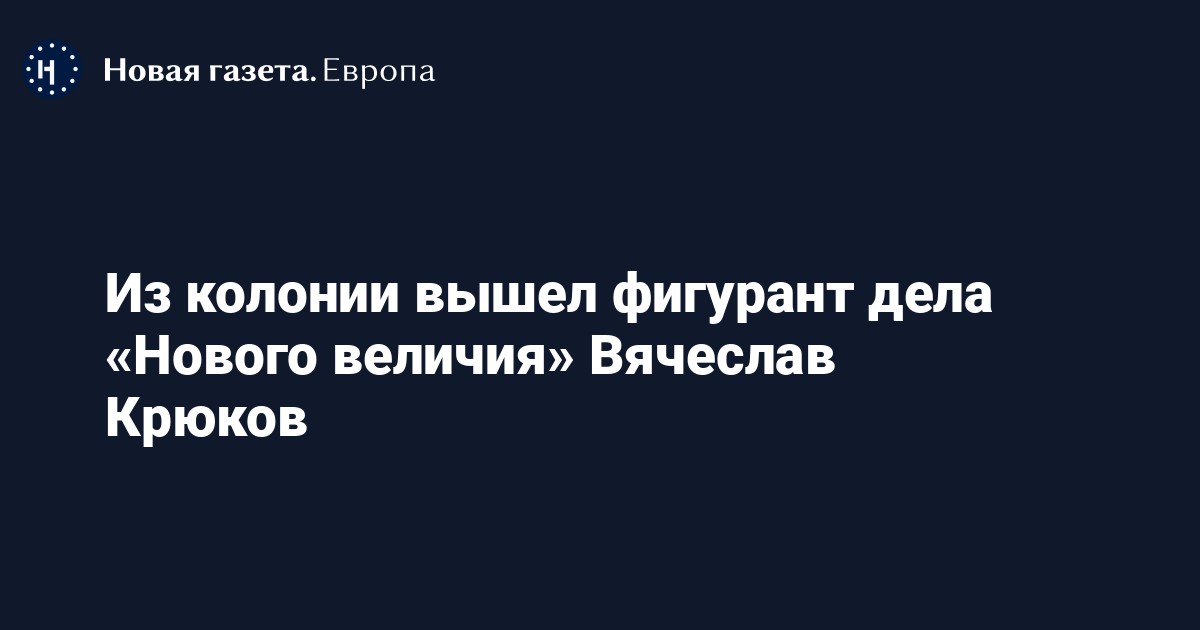 Из ИК-10 вышел первый фигурант дела «Нового величия» Вячеслав Крюков. Об этом сообщила группа поддержки фигурантов дела со ссылкой на его адвоката.