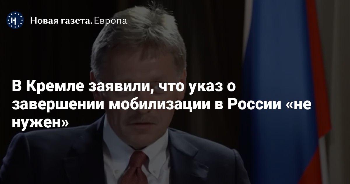 «Имеется в виду, нужен ли указ после окончательного заявления министра обороны Сергея Шойгу о завершении частичной мобилизации. Президент сказал, что он посоветуется с юристами, правовиками. Сообщаем: указ не нужен», — сказал Песков (цитата по ТАСС).
