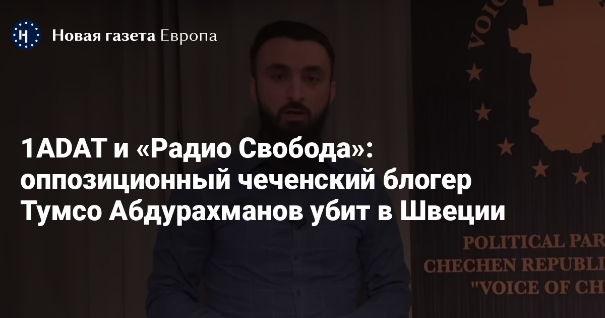 Оппозиционный чеченский блогер Тумсо Абдурахманов, критиковавший главу ЧР Рамзана Кадырова, убит в Швеции, сообщает телеграм-канал 1ADAT, ссылаясь на данные «информаторов из Европы и Чечни». Информацию подтвердили «Радио Свобода» неназванные соратники блогера.