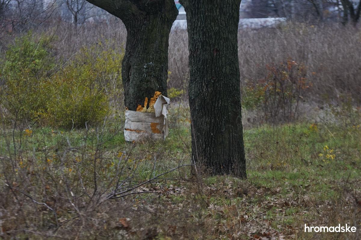 След от обстрела на одном из деревьев в Сиреневом парке. Фото: Александр Хоменко / hromadske