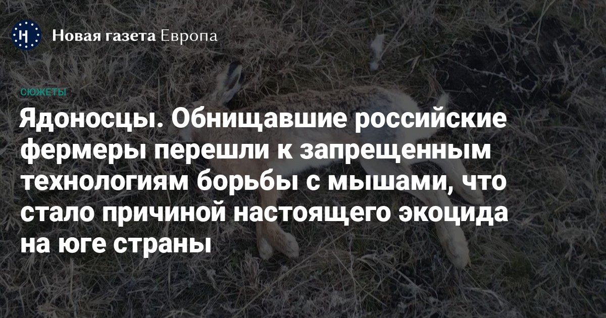 Тот факт, что в борьбе с грызунами не только нарушаются технологии, но и применяются запрещенные вещества взамен сильно подорожавших или ушедших с рынка (из-за введенных после начала войны санкций) импортных родентицидов, признал ставропольский губернатор Владимир Владимиров. Правда, причиной нашествия мышей он назвал аномально теплую зиму прошлого года, а не потери зерна при рекордных урожаях и стареющем парке сельхозтехники. А поскольку российское зерно по итогам прошлого года перешло из продовольствия в категорию политического оружия, губернатор Владимиров пообещал аграриям полную поддержку и даже государственное обеспечение ядами.