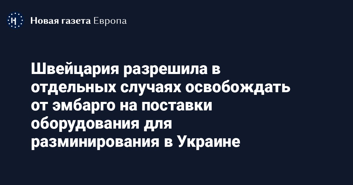 Швейцария утвердила новые правила, касающиеся экспорта военной продукции в Украину. Теперь она сможет в определенных случаях предоставлять освобождение от эмбарго на поставку оборудования для разминирования в Украине.
