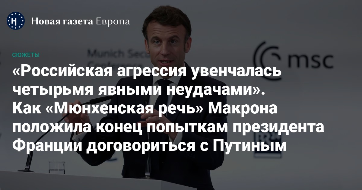 По пути из Мюнхена, в самолете, Макрон дал «уточняющее» интервью трем французским СМИ. Сказал: «Я хочу, чтобы Россия потерпела поражение в Украине, и я хочу, чтобы Украина могла защитить свою позицию. Но я убежден, что в конечном итоге это не будет решено военным путем. Я не думаю, как некоторые, что Россия должна быть полностью разгромлена, атакована на своей собственной земле. (…) Это никогда не было позицией Франции и никогда не будет».
