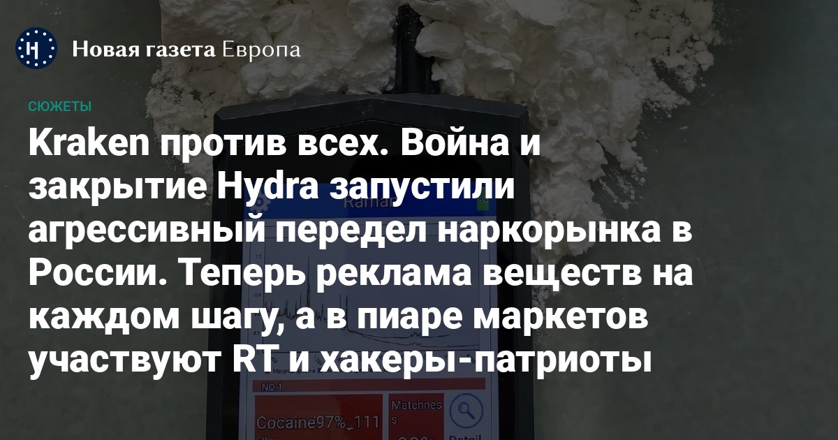 Чтобы затопить российские улицы рекламой наркотиков, хватило обыска в серверной Hydra в Германии — и вот уже ссылка на очередной маркетплейс в даркнете транслируется на экране в Москва-Сити. В пиар-войнах наркоторговцев поучаствовали даже провластные СМИ. А отдельные игроки рынка вообще начали экспансию за пределы общепризнанных границ РФ. «Новая газета Европа» рассказывает, как война поменяла российский наркорынок.