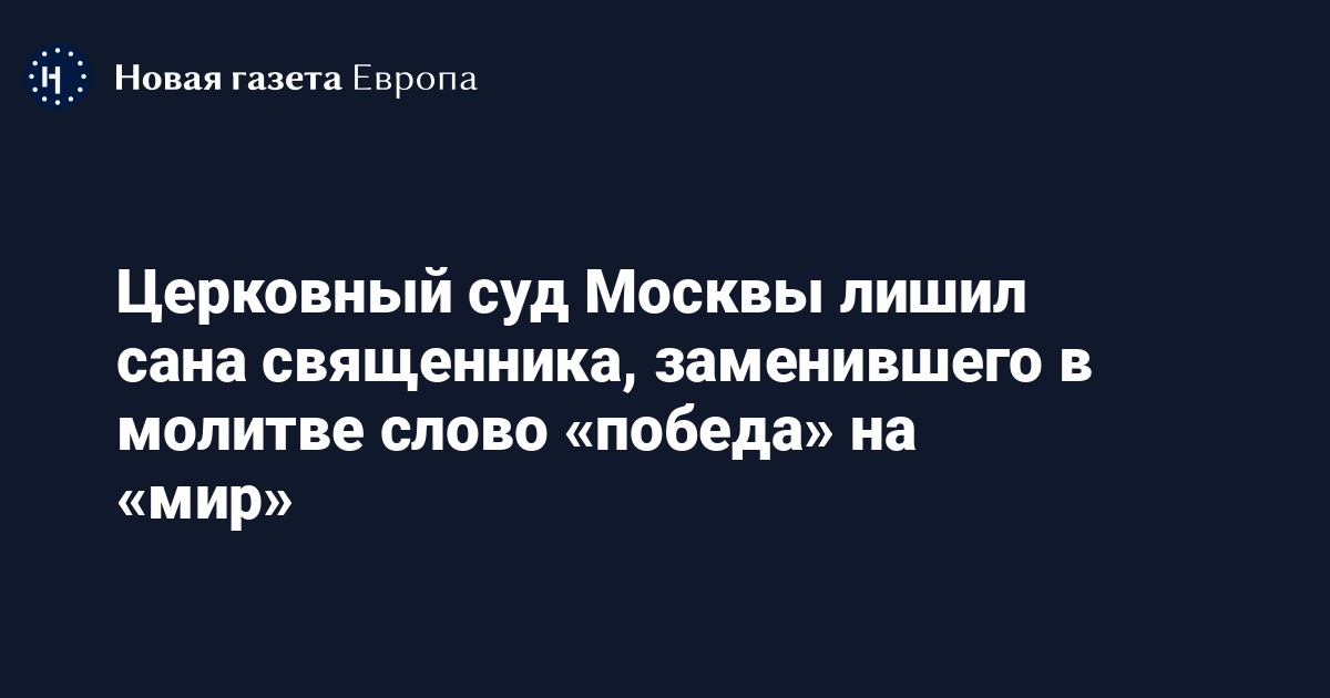 Церковный суд Москвы лишил сана клирика храма Андрея Первозванного в Люблино иерея Иоанна Коваля, заменившего в молитве слово «победа» на «мир». Об этом сообщает «Правмир».
