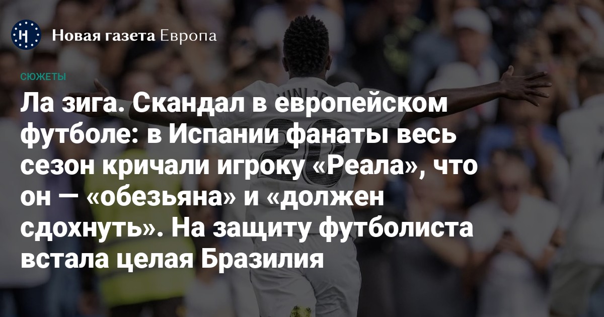 Темнокожий форвард «Реала» из Бразилии Винисиус Жуниор стал мишенью расистских кричалок болельщиков во время матча с «Валенсией». Скандал достиг такого масштаба, что его прокомментировал президент Бразилии. Испанская футбольная лига утверждает, что делает все возможное для борьбы с расизмом в рамках своих компетенций, сам футболист же настаивает, что функционеры не предпринимают никаких реальных действий. «Новая газета Европа» подробно рассказывает про эту ситуацию.