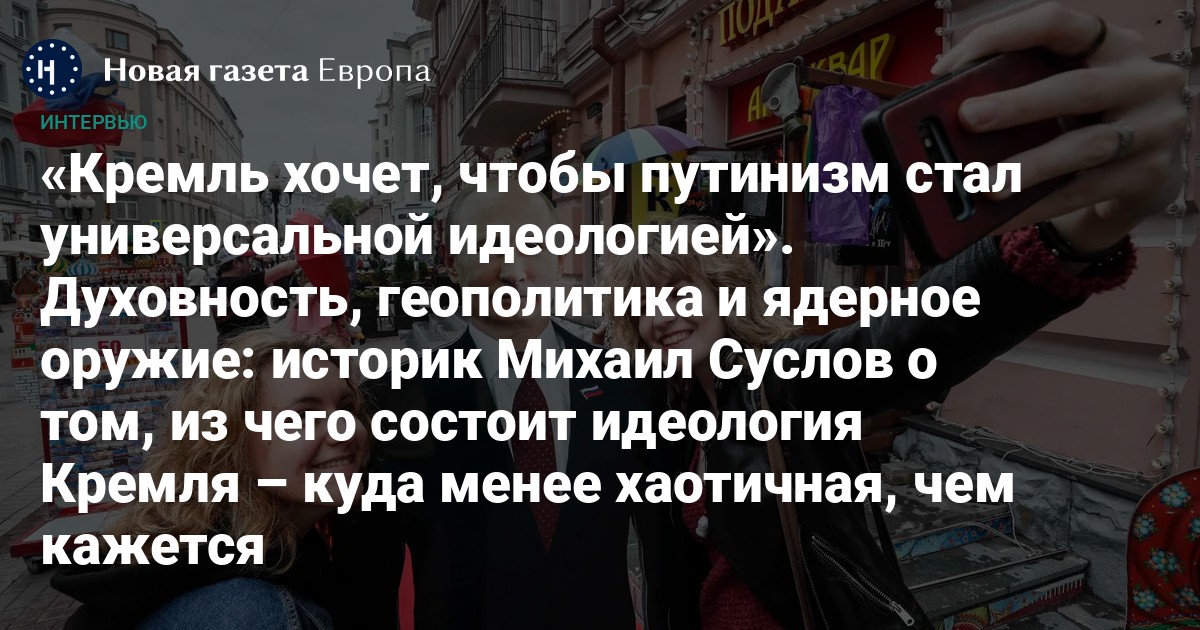 Принято считать, что российские власти не придерживаются четкой идеологии, а прагматически используют яркие, но пустые штампы, которые прямо сейчас играют им на руку: «традиционные ценности», «антиколониализм», «русский мир» и так далее. Историк и исследователь идеологий. Михаил Суслов считает, что это не так: путинизм существует — и он гораздо более последователен, чем кажется (хотя до марксизма-ленинизма пока далеко). Мы поговорили с ученым о том, какие идеи транслируют российские элиты, откуда в речах Путина появился «левый уклон» и почему все это ведет к оправданию ядерной войны.