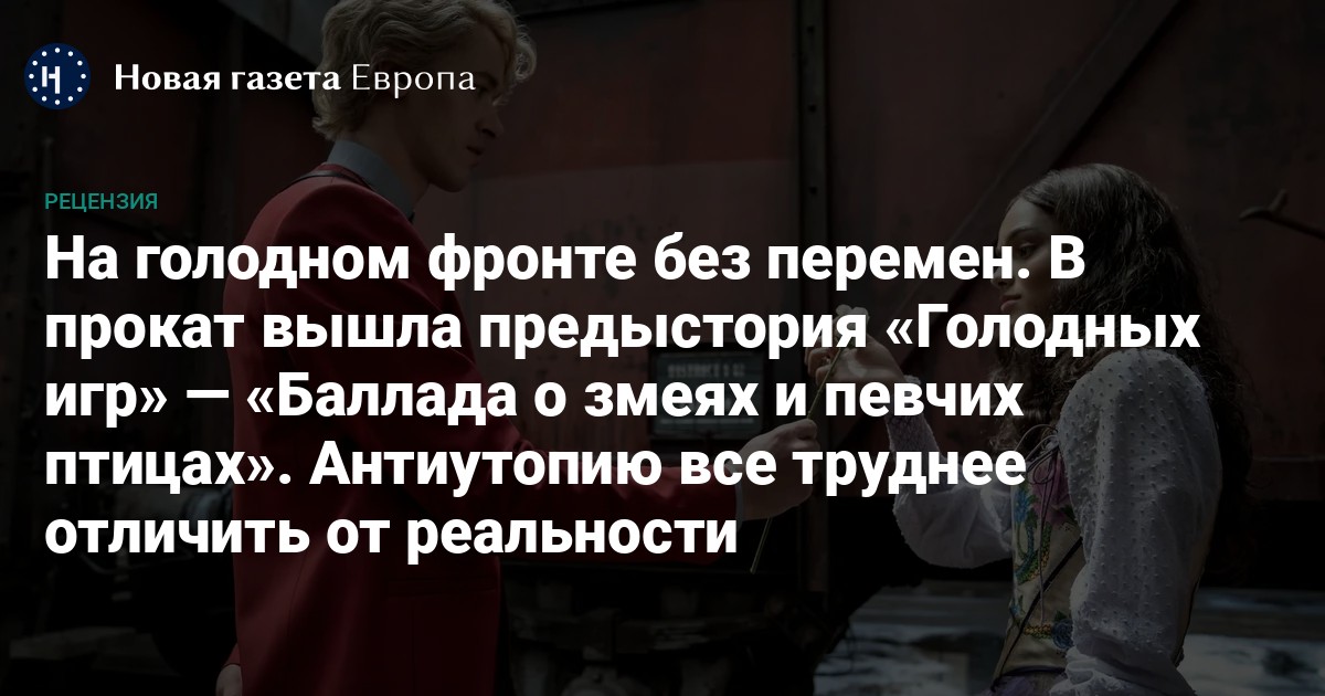 В век информационных войн, жестоких видео из зон боевых действий, реалити-шоу по сценарию «Золушки» и экстремистских телеграм-каналов, «Баллада» кажется не антиутопией, а зеркалом реальности. На голодном фронте без перемен: золотой миллиард всё ещё смотрит в экраны, пока массы людей под камерами бегут от бомбардировок, кризисов и войн, начатых наверху. «Голодные игры нужны каждый год, чтобы напоминать нам, кто мы на самом деле», — приходит к выводу Кориолан Сноу. Певчие птицы могут ласкать слух и даже укрощать змей, но шоу должно продолжаться