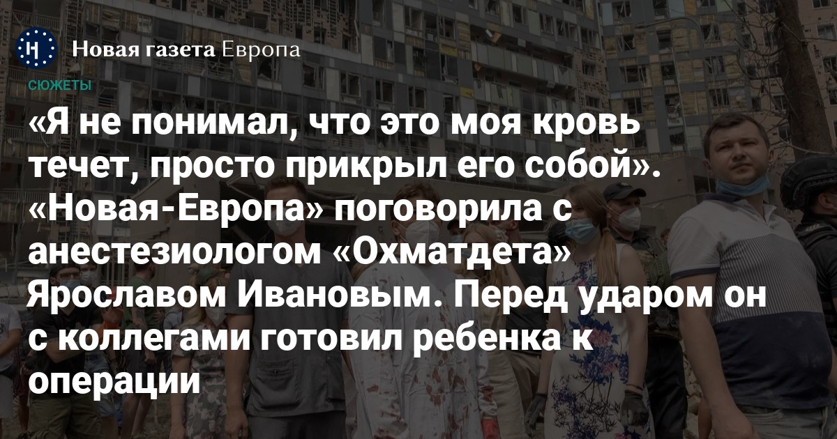 Во время российского удара по Киеву 8 июля одна из ракет прилетела в детскую больницу «Охматдет». В этот момент анестезиолог Ярослав Иванов вместе с коллегами (среди них был Олег Голубченко) находился в операционной и готовил четырехмесячного ребенка к плановой операции. В разговоре с «Новой-Европа» он вспоминает, что буквально за секунды после взрыва от операционной ничего не осталось, все мониторы, вся аппаратура, которая фактически дышала за пациента, была разрушена: