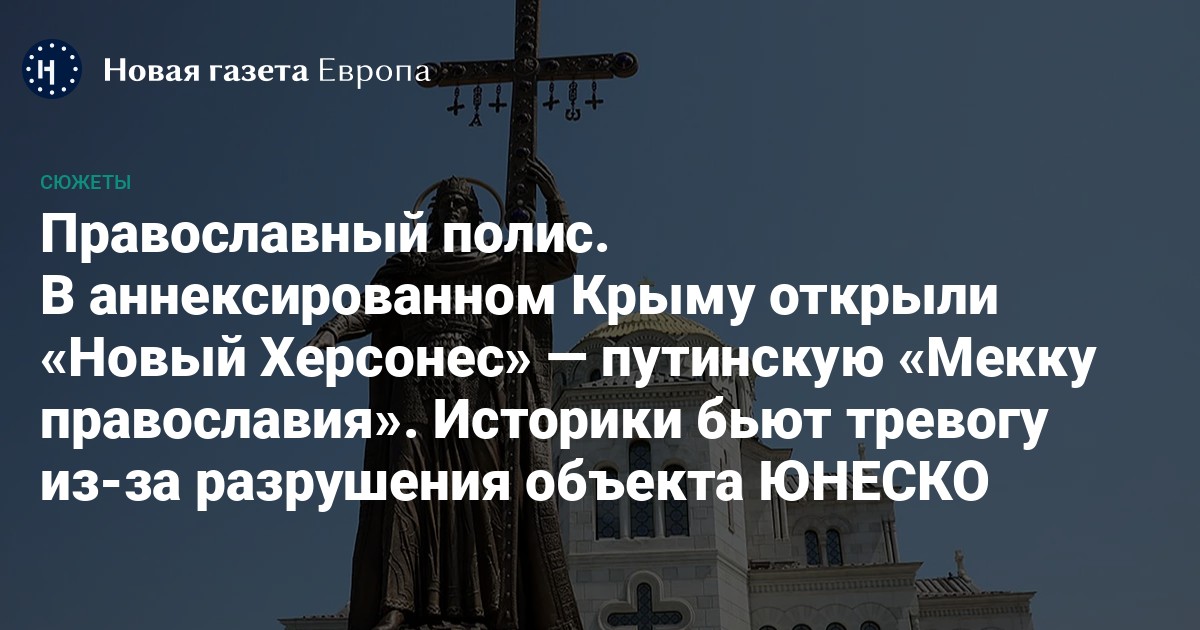 Апофеозом стало возведение так называемого «Нового Херсонеса», который стоит на малоисследованной земле. В ответ на критику пресс-секретарь Путина Дмитрий Песков язвительно отвечает: «Нет худа без добра. Представители ЮНЕСКО при желании смогут приехать в «Херсонес Таврический» и восхититься тем, каким он стал».