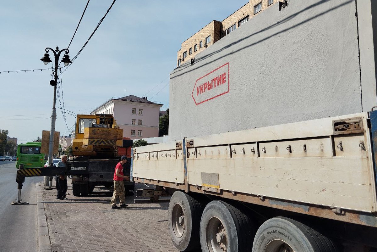 Установка укрытия в Курске, август 2024 года. Фото: Алексей Смирнов / Telegram