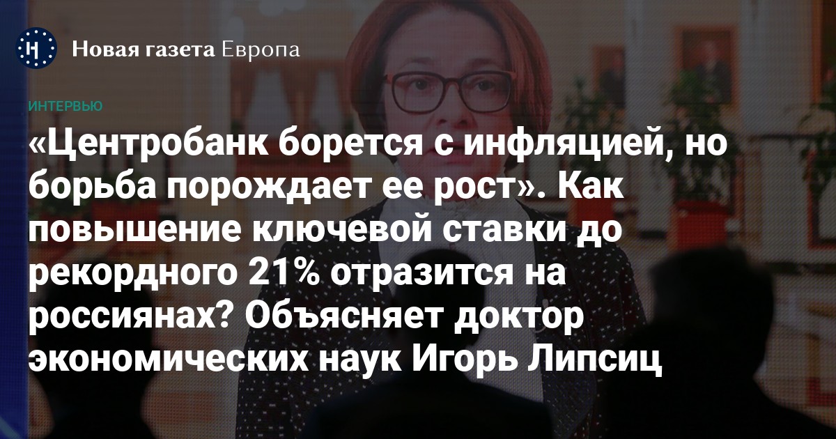 Насколько эффективно повышение ключевой ставки в борьбе с инфляцией и как это отразится на кошельках российских граждан — в разговоре с «Новой газетой Европа» объясняет экономист, профессор и доктор экономических наук Игорь Липсиц.
