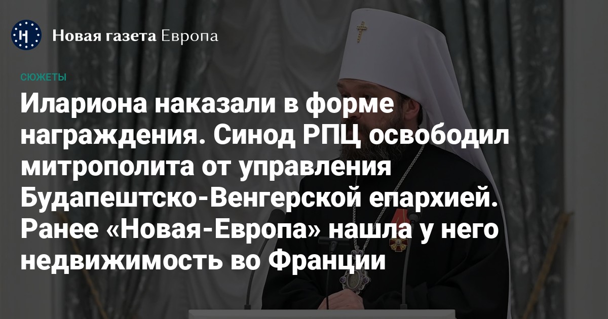 Священный синод — де-факто высший орган управления РПЦ в межсоборный период (а соборы в РПЦ не проводились с 2017 года) — поставил точку в деле митрополита Илариона (Алфеева), появившемся в июле этого года, после публикации «Новой-Европа». Бывшего постоянного члена синода, бывшего председателя Отдела внешних церковных связей (ОВЦС) и теперь уже бывшего управляющего Будапештско-Венгерской епархией отправили «на покой» — служить в русском храме святых Петра и Павла на чешском курорте Карловы Вары.