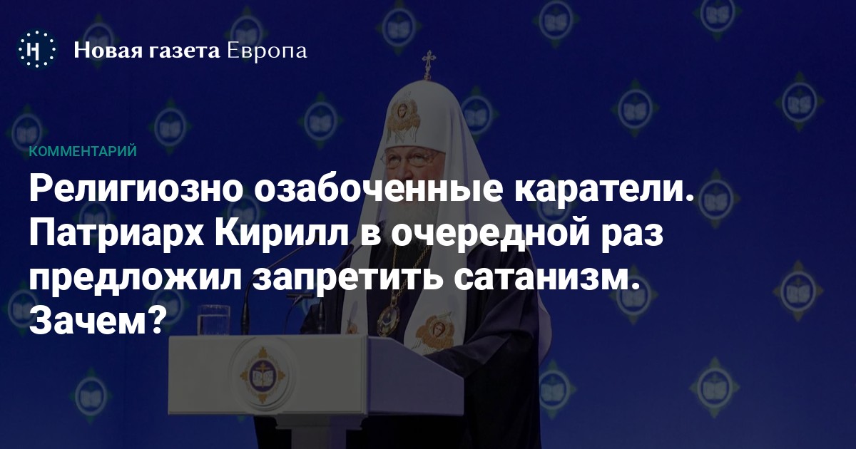 Руководство РПЦ активно включилось в «социалистическое соревнование» по выдумыванию новых репрессивно-запретительных мер для устрашения населения России. Известный своими мечтами об «отмене Апокалипсиса» (читай: радикальном пересмотре Библии) патриарх Кирилл призвал руководство РФ запретить наконец сатанизм, что бы это ни значило.