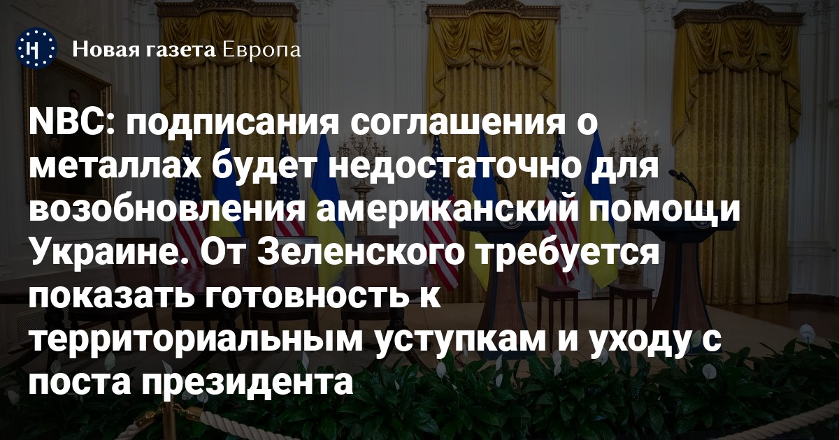 Дональд Трамп в частном порядке дал понять своим помощникам, что подписания соглашения о редкоземельных ископаемых между Вашингтоном и Киевом будет недостаточно для возобновления оказания помощи и обмена разведданными. Об этом сообщил NBC со ссылкой источники.