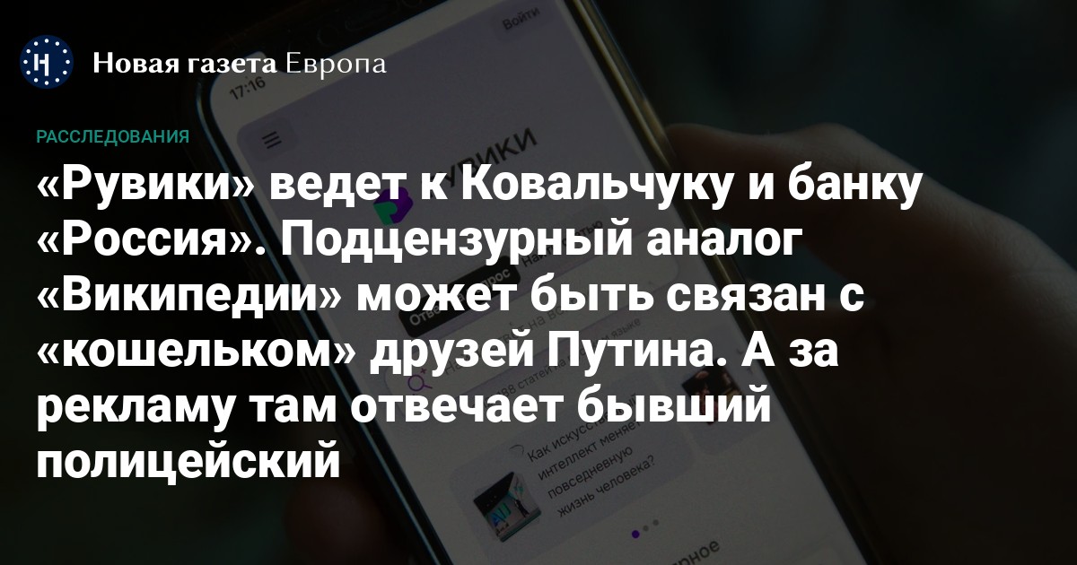 Как выяснила «Новая газета Европа», сайт «Рувики» — один из российских аналогов «Википедии», который запустили после начала полномасштабного вторжения в Украину, — связан с банком «Россия», который называют банком друзей Путина. За рекламное направление в проекте отвечает бывший сотрудник управления «К» МВД.