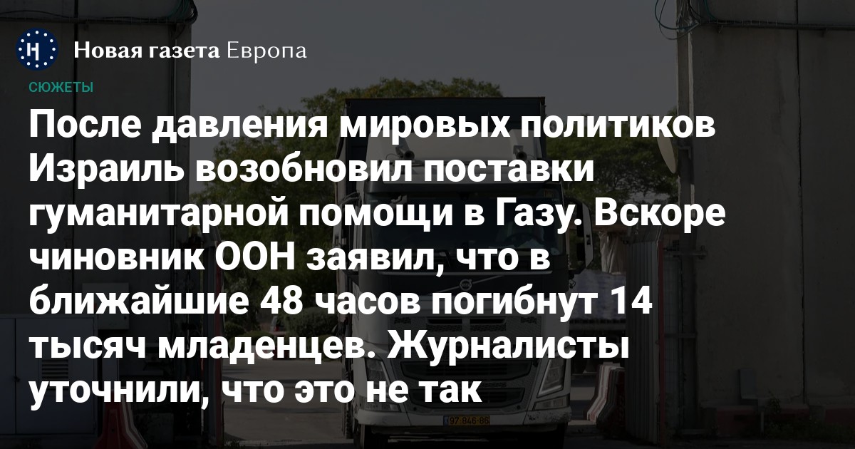 Подробнее об этих событиях и о текущей ситуации с гуманитарной помощью в секторе Газа — в материале «Новой газеты Европа».