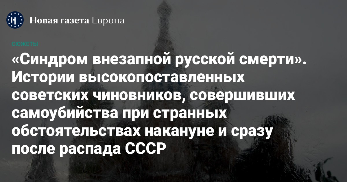На прошлой неделе бывший глава Минтранса, 53-летний Роман Старовойт совершил самоубийство: тело чиновника нашли в его автомобиле через несколько часов после того, как появилась новость о его отставке. По версии следствия, Старовойт застрелился при помощи наградного пистолета. Старовойт — не единственный высокопоставленный чиновник из путинской России, который решил свести счеты с жизнью при загадочных обстоятельствах. Только за последние четыре года в России погибли не менее 27 топ-менеджеров известных российских корпораций — и все при странных обстоятельствах: отравились, выпали из окна, испытали сердечный приступ. На Западе этому явлению даже придумали специальный термин — «синдром внезапной русской смерти». Такое происходит не в первый раз. В 1991 году, когда Советский Союз разваливался, страну тоже потрясла череда странных и таинственных самоубийств высокопоставленных чиновников.