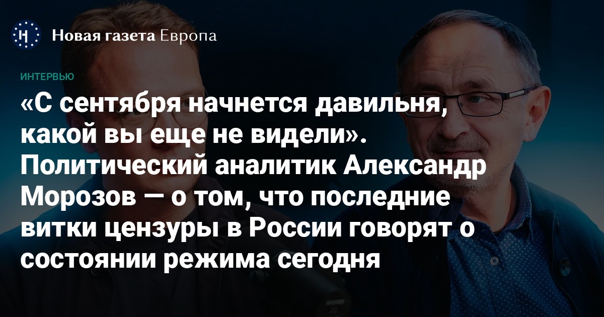 Главный редактор «Новой газеты Европа» Кирилл Мартынов поговорил с политическим аналитиком Александром Морозовым. Обсудили, что последние витки цензуры в России говорят о состоянии режима сегодня. Зачем российские власти запретили «Международное движение сатанизма»? Чем объясняется протестное голосование против нового закона об «экстремизме»? Между «неосоветизмом» и «неосталинизмом»: сможет ли Путин установить советскую цензуру в России? И чего стоит ждать дальше?