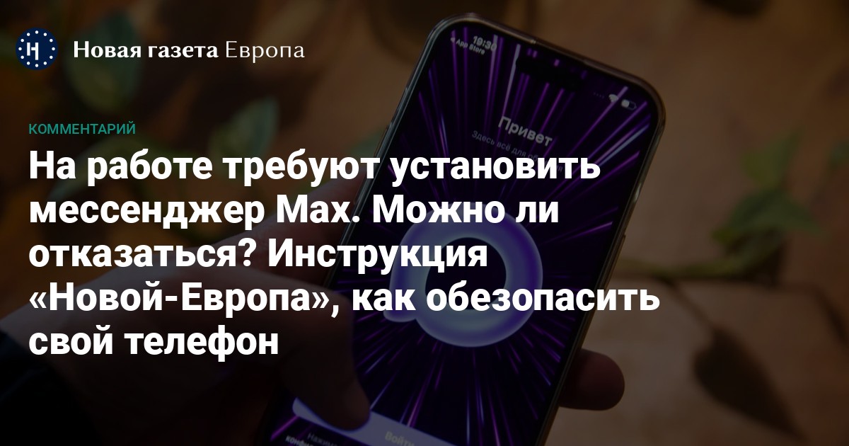 Если от вас на работе требуют установить Max на ваш личный телефон, киберадвокат Саркис Дарбинян советует для начала попробовать сказать «нет» вашему начальнику. Он отмечает, что «телефон ваш, как и право на тайну частной жизни и свободу выбора».