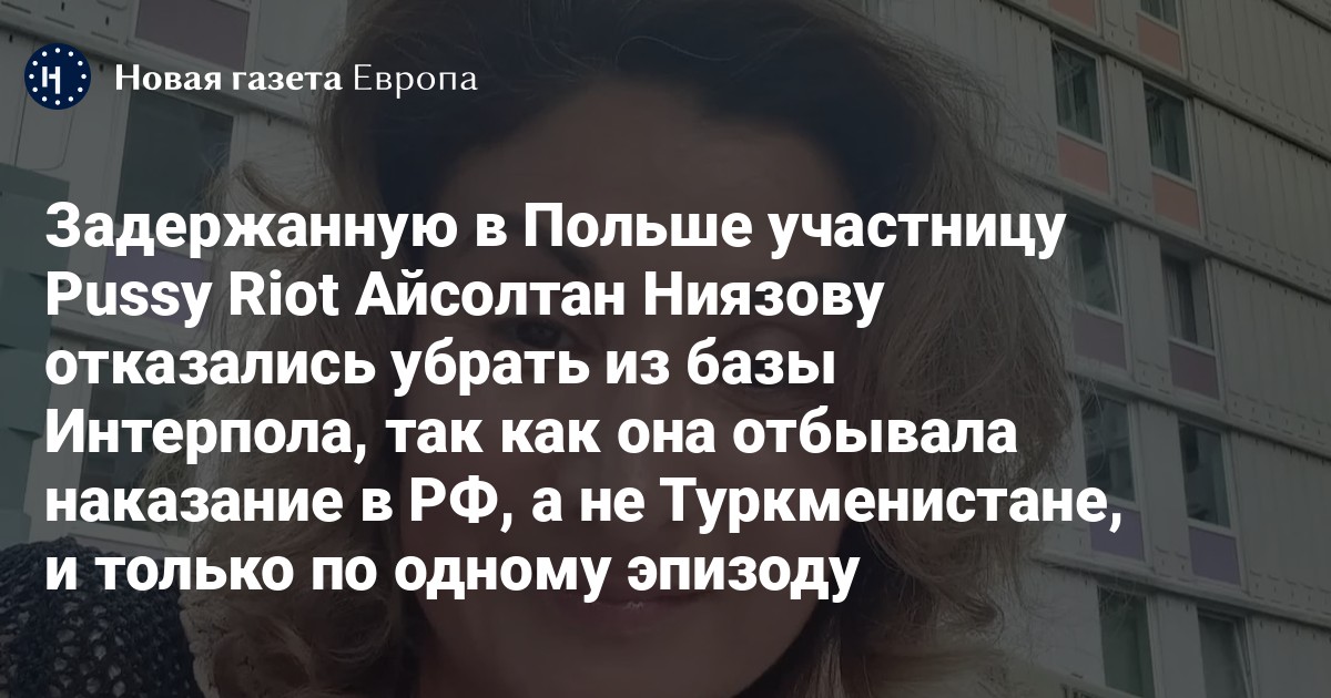 Задержанную в Польше участницу Pussy Riot Айсолтан Ниязову отказывались убрать из базы Интерпола, так как она отбывала уголовное наказание в России, а не Туркменистане, и только по одному эпизоду. Об этом говорится в ответе комиссии Интерпола на запрос об удалении Ниязовой из базы от 2023 года, рассказала «Новой газете Европа» другая участница группы Люся Штейн.