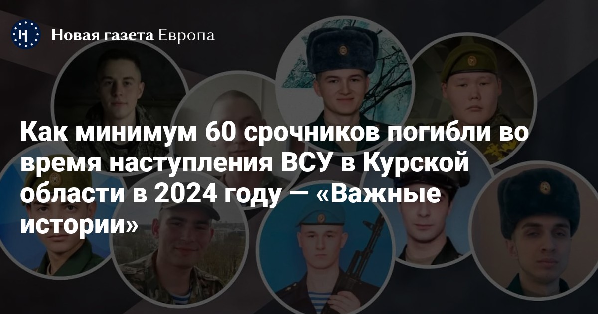 Летом и осенью 2024 года погибли по меньшей мере 60 срочников, находившихся в Курской области во время наступления ВСУ в Курской области. Об этом говорится в расследовании «Важных историй».