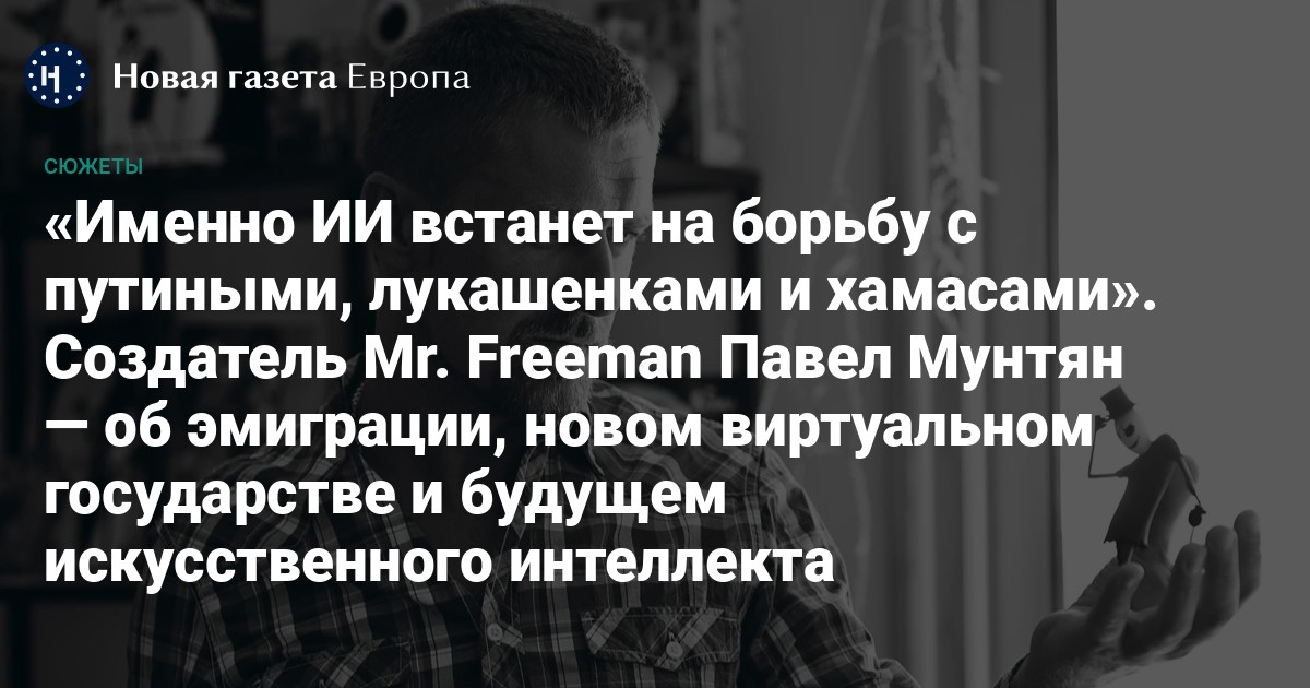 Павел Мунтян — российский анимационный продюсер, сценарист, сооснователь студии Toonbox, автор идеи анимационного сериала Mr. Freeman («Фримен», или «Господин Свободный Человек») и виртуального государства Freeland (Фриленд). В 2014 году, после аннексии Россией Крыма, переехал из Москвы на Кипр. В феврале 2022 года решительно выступил против российского вторжения и организовал фонд помощи Украине, который уже собрал 725,000 долларов на продукты питания, средства защиты и другие гуманитарные цели. В России Мунтян признан «иноагентом» и заочно приговорен к восьми годам колонии по статье о «фейках о российской армии». «Новая-Европа» поговорила с Павлом о проекте Mr. Freeman, виртуальном государстве Freeland и монументе Алексею Навальному.
