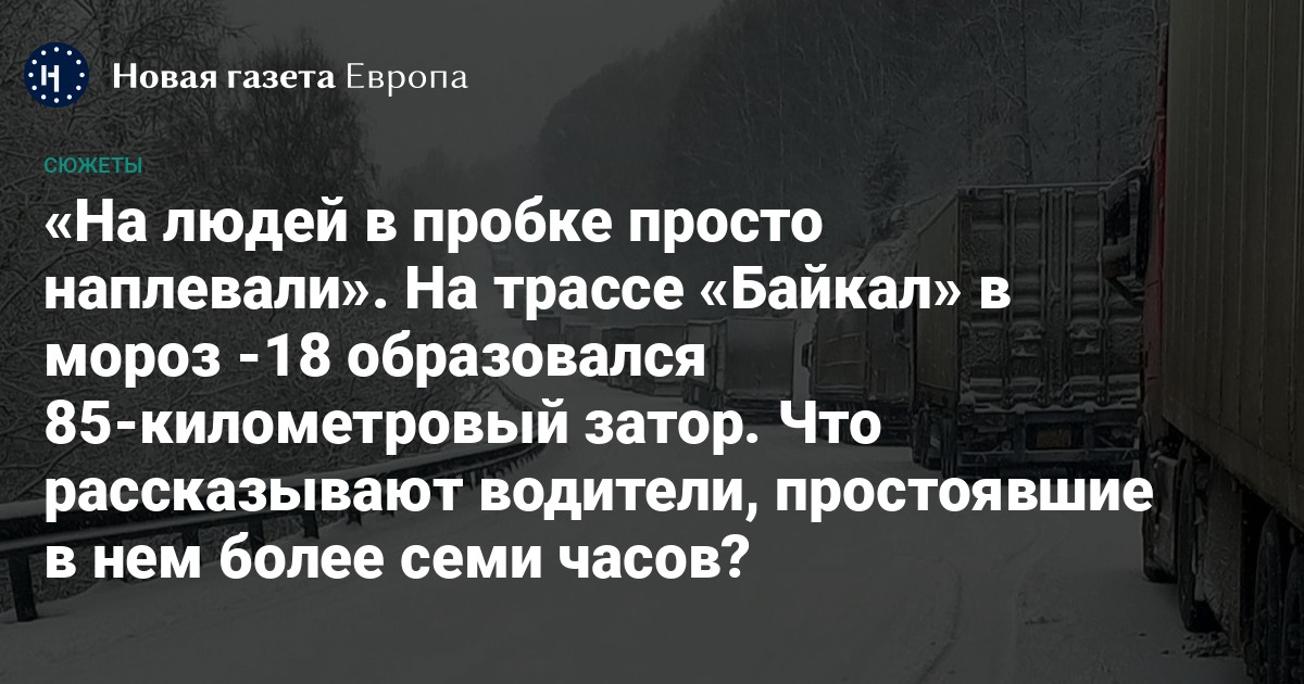 На федеральной трассе «Байкал» между Бурятией и Иркутской областью водители застряли в пробке, растянувшейся на 85 км. Несмотря на запуск движения, они продолжают по много часов стоять на месте, пока температура за окном опускается до -18 градусов. Чтобы выехать из пробки, по рассказам водителей, им приходится нарушать правила дорожного движения.