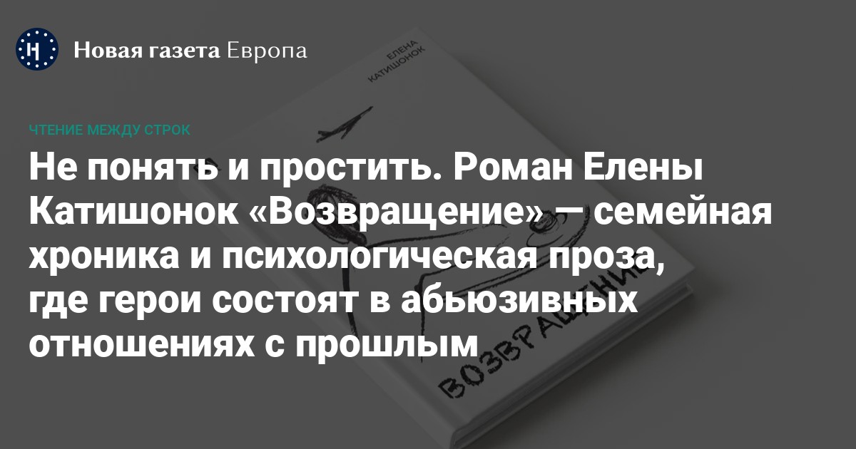 Елена Катишонок не раз говорила, что всю жизнь пишет одну и ту же книгу. «Возвращение» — ее органичный и, определенно, удачный элемент. Это вполне традиционный большой роман, написанный точным и очень выразительным, литературным языком. Глубины внутреннего мира героев, семейная история и вопросы из категории вечных — книга явно откликнется тем, кто обычно со скепсисом относится к современной литературе, — «читает и перечитывает классику».