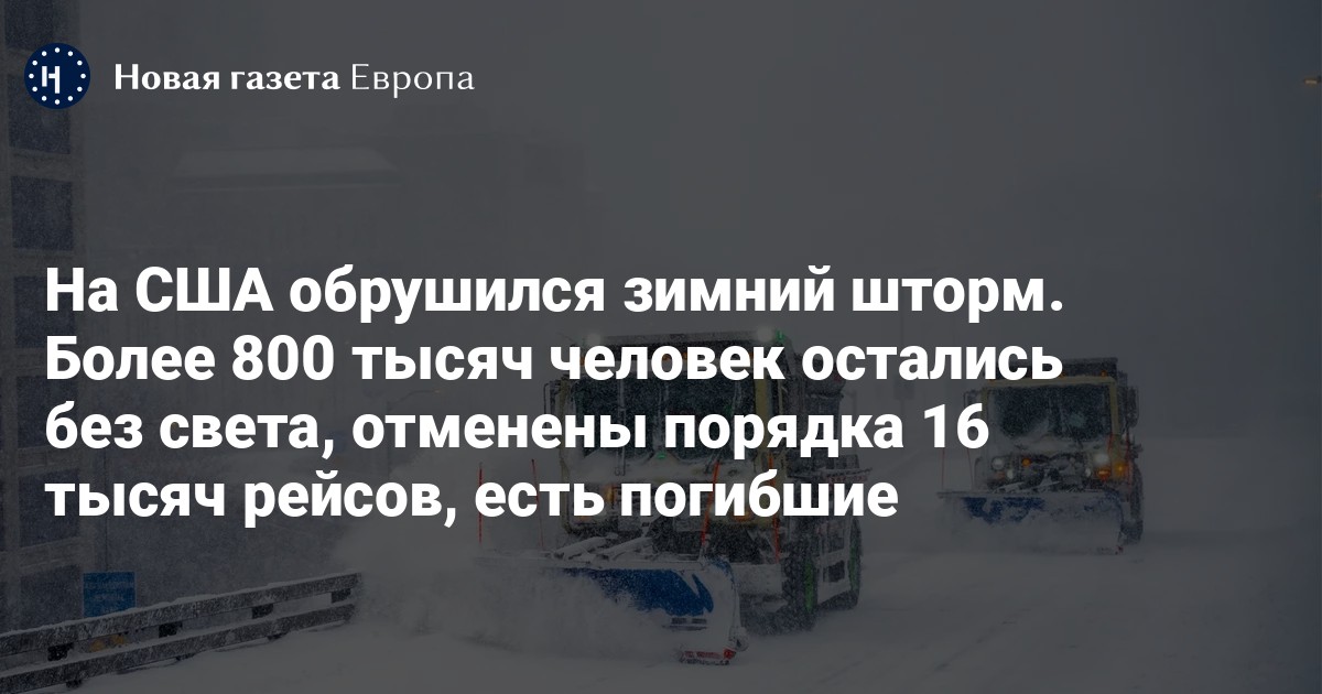 На США обрушился зимний шторм. Более 800 тысяч человек остались без света, отменены порядка 16 тысяч рейсов, есть погибшие