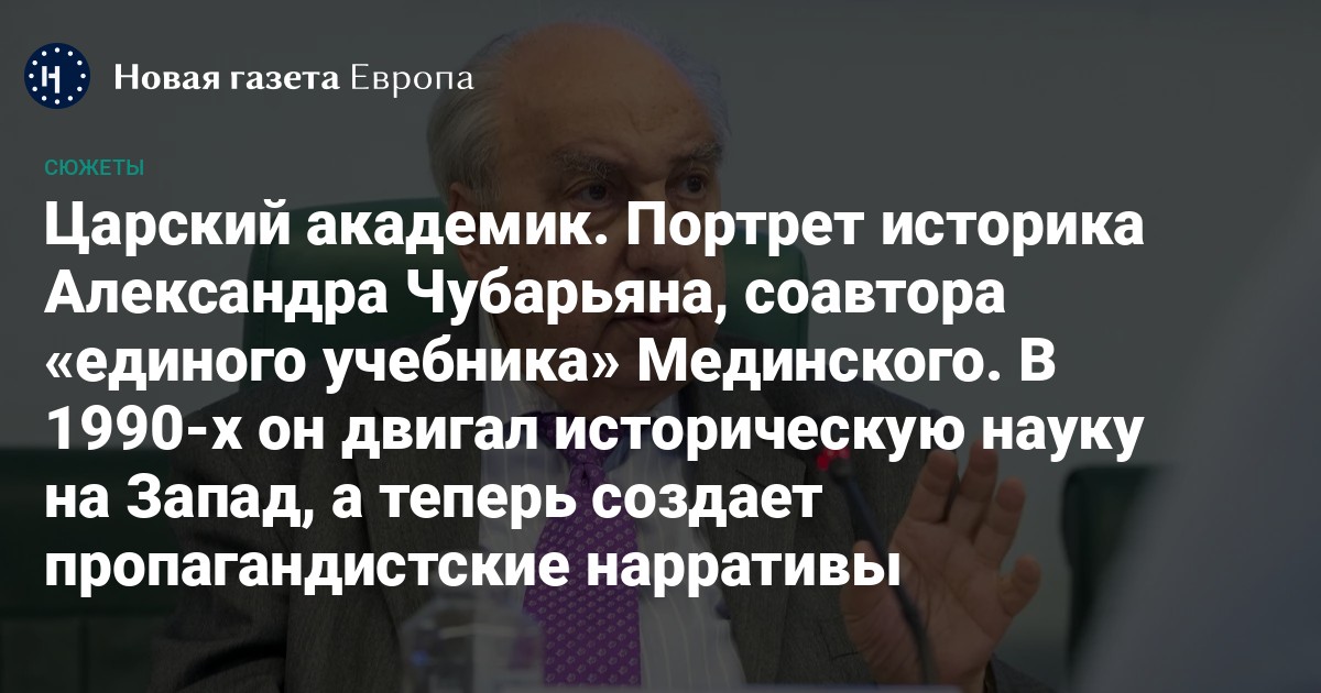 Академик Александр Чубарьян мало известен широкой публике, при том что он старожил и ключевая фигура российской исторической науки. Или, вернее, научной бюрократии. В этом году он будет праздновать 95-летний юбилей, кандидатскую диссертацию он защитил в 1959 году, первая монография вышла в 1964-м. Владимир Мединский тогда еще не родился, а Владимир Путин был подростком из питерских дворов.