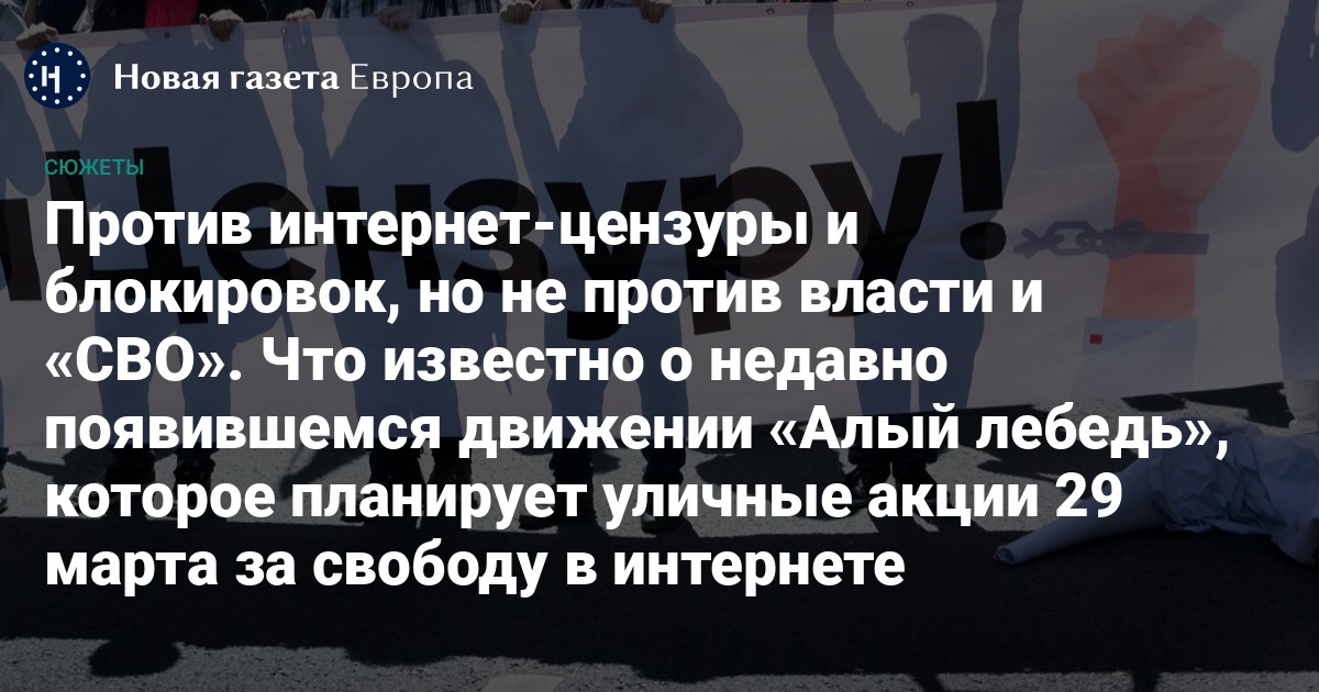 «Алый лебедь» — это стихийное молодежное движение, Telegram-канал которого появился 14 марта. Его участники распространяют видео и информацию преимущественно в Telegram и TikTok. Сразу после создания «Алый лебедь» объявил об организации всероссийских уличных акций 29 марта против ограничений интернета, блокировок популярных сервисов (Discord, Telegram, YouTube) и, в более широком смысле, против цензуры в сети, музыке и литературе.