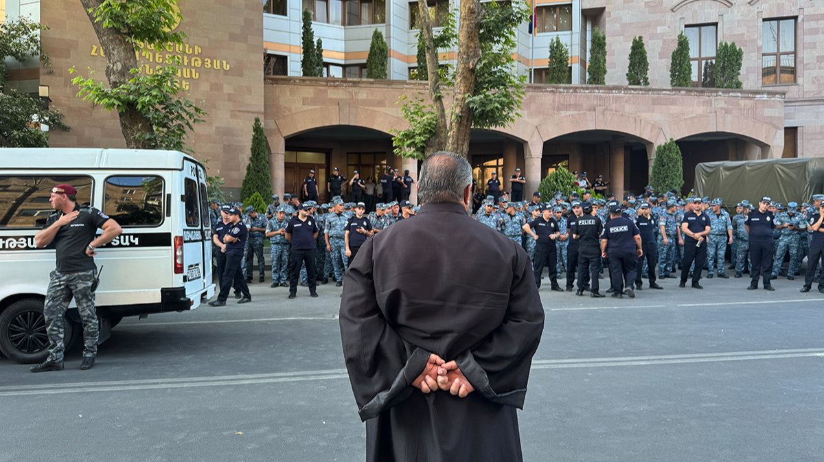Эчмиадзин в осаде Силовики в Армении впервые штурмовали резиденцию Католикоса. Верующие не дали задержать оппозиционного архиепископа, позже он сам поехал в СК и теперь арестован