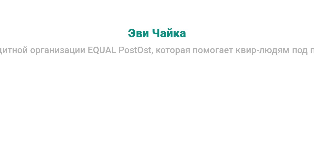 правозащитница, ЛГБТИК-активистка, основательница правозащитной организации EQUAL PostOst, которая помогает квир-людям под преследованием из стран Восточной Европы и Центральной Азии